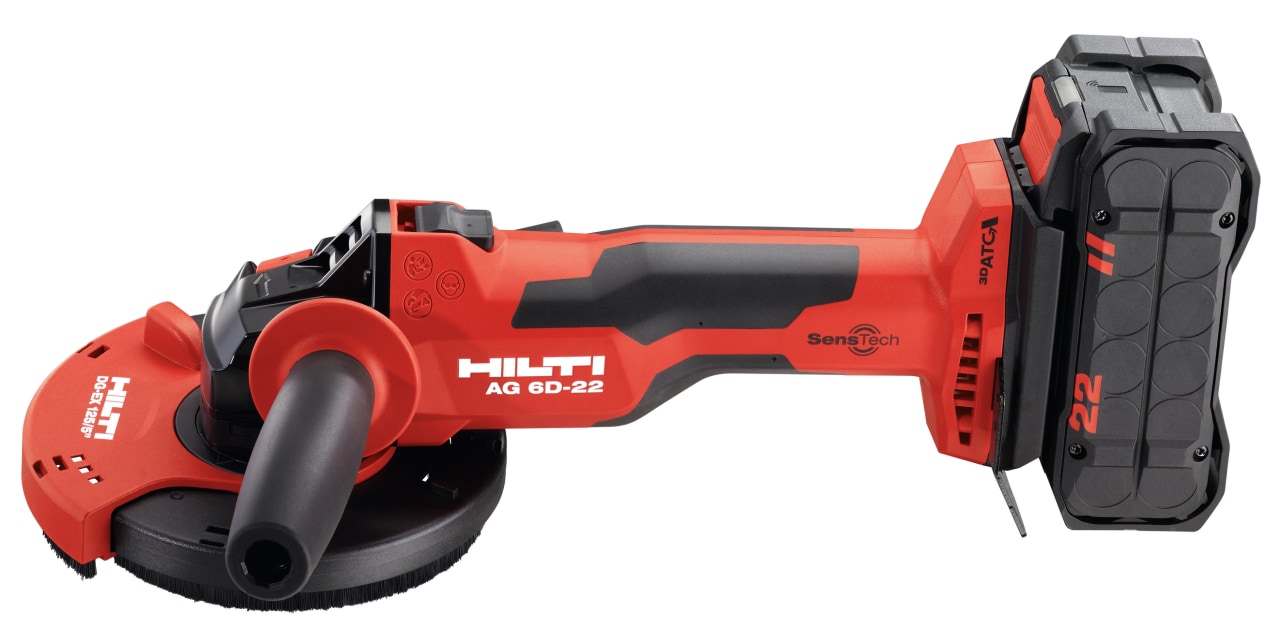 With Hilti SensTech technology for angle grinders, the tool automatically shuts off when the operator’s hand is removed – for example when it is accidentally dropped. And with 3D ATC, the tool shuts off with sudden, uncontrolled movement in any direction.